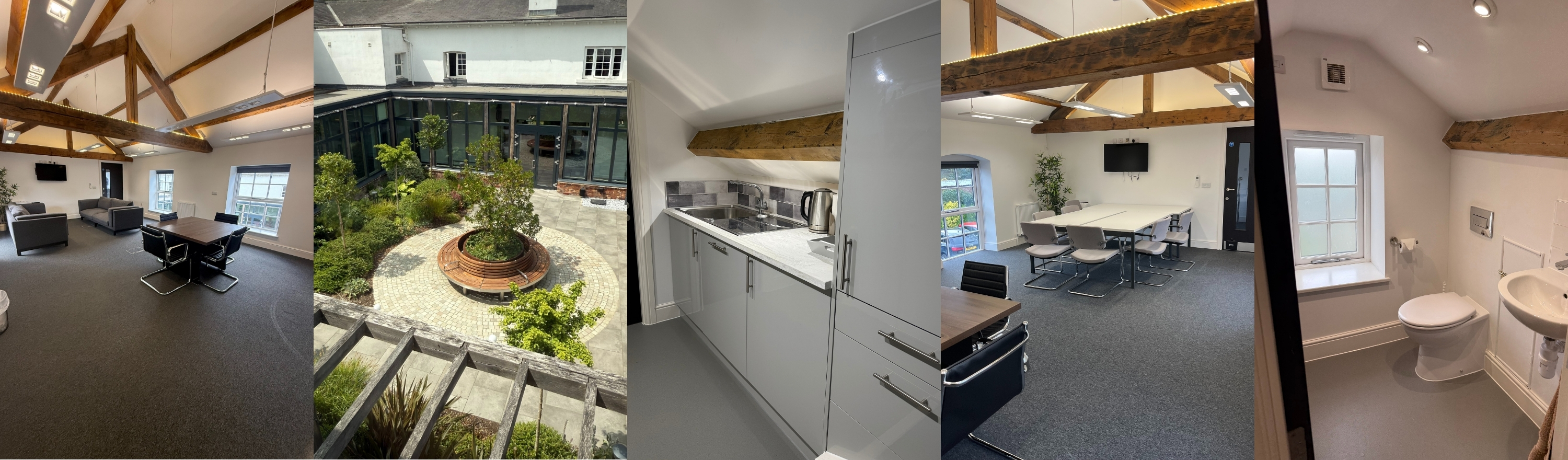 The Mews at Stockton House offers a bright, flexible workspace for up to six people. It is a thoughtfully refurbished office environment that blends character with practicality. Featuring exposed wooden beams, modern lighting, and a versatile open-plan layout, the space is designed to accommodate a range of business types.